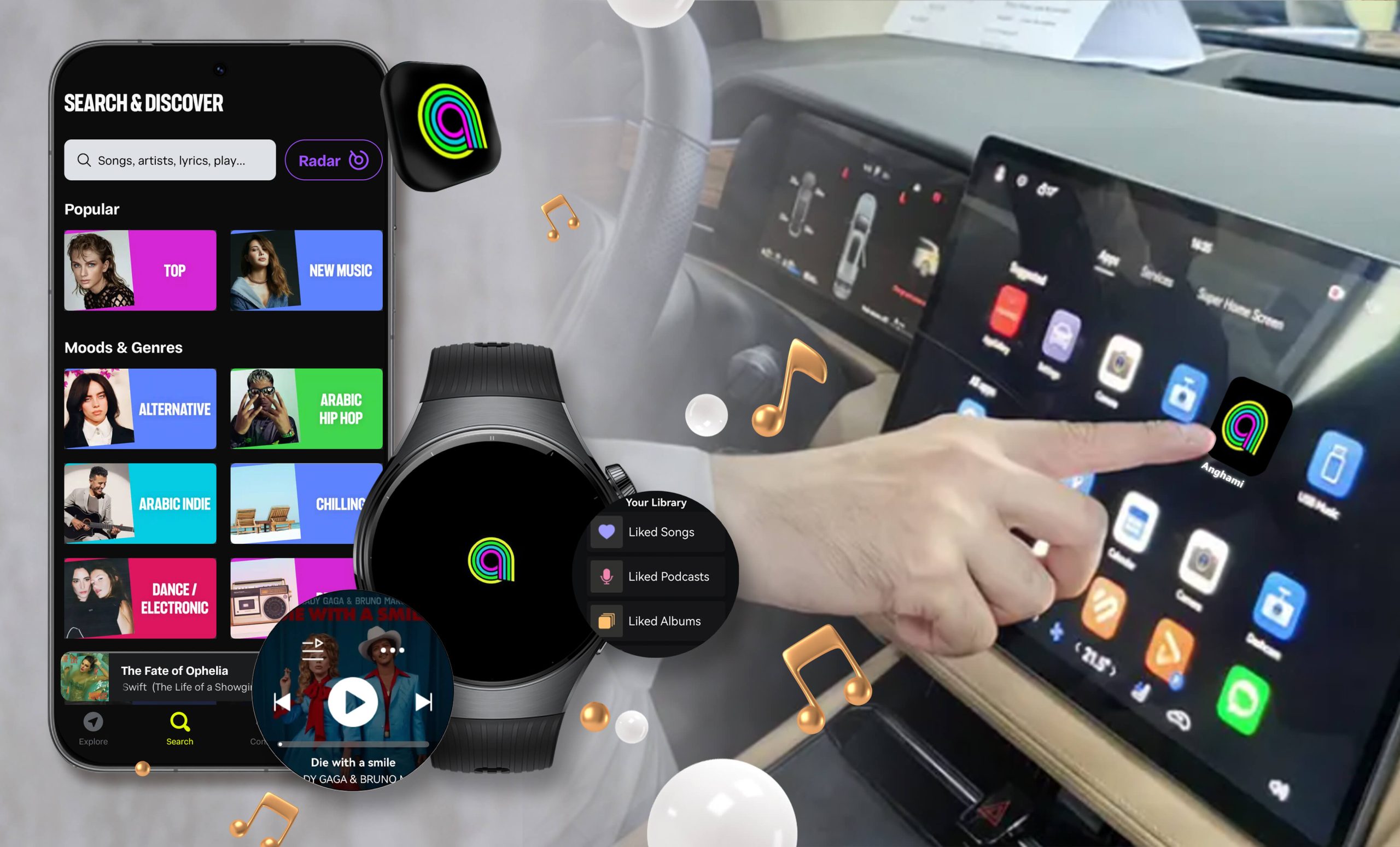 وفي عام 2021، أطلقت “أنغامي” أول تطبيق لها على ساعات هواوي الذكية بنظام HarmonyOS، لتتيح للمستخدمين التحكم الكامل في تشغيل الموسيقى واستكشاف المقاطع الجديدة مباشرة من معصم اليد، في خطوة تُعد الأولى من نوعها بين منصة بث موسيقي وساعات ذكية في المنطقة.