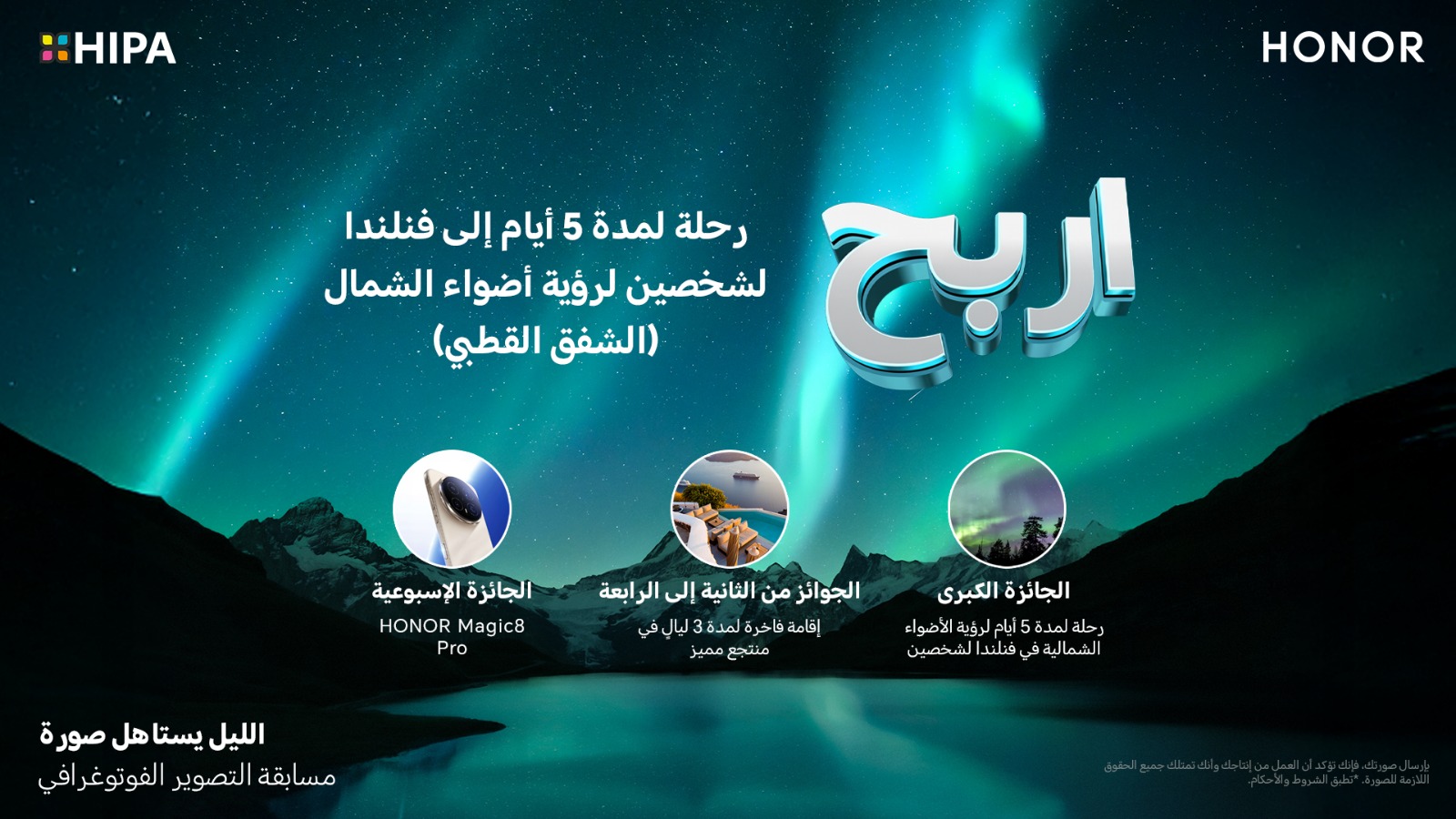 تدعو HONOR, العلامة الرائدة عالمياً في الأجهزة المدعومة بالذكاء الاصطناعي، عشاق التصوير وصنّاع المحتوى في مختلف أنحاء المنطقة للمشاركة في مسابقة «الليل يستاهل صورة» في إطار حملة إطلاق هاتفها الجديد HONOR Magic 8 Pro بالتعاون مع جائزة حمدان بن محمد بن راشد آل مكتوم الدولية للتصوير الضوئي (HIPA). تهدف المسابقة إلى تشجيع المشاركين على التقاط لحظات فريدة من الضوء وسرد القصص، مع فرصة الفوز بجوائز استثنائية.