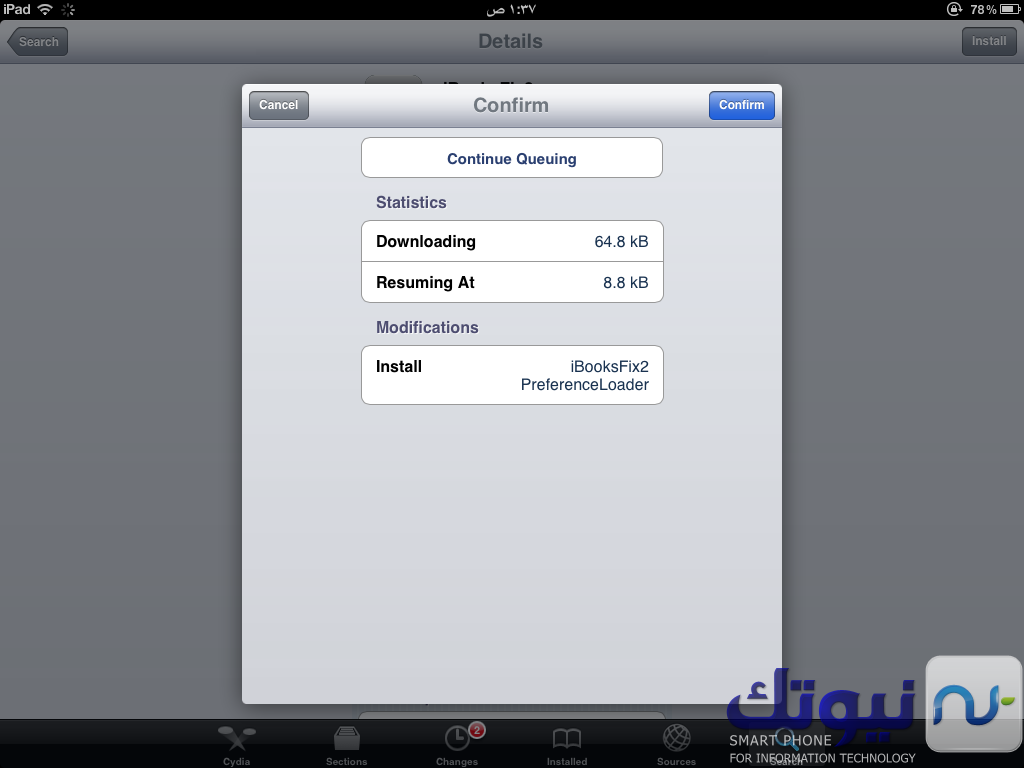 بعد الضغط على iBooksFix2 تظهر لنا صفحة الاضافة نضغط على install ثم Confirm
