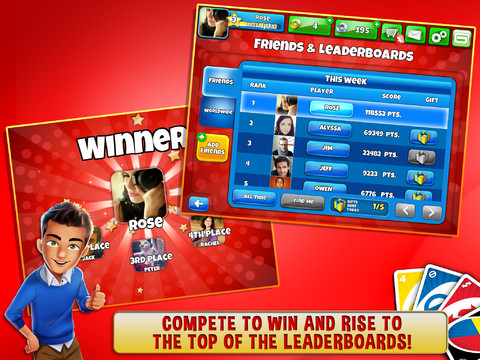 إن طريقة لعب UNO مع الأصدقاء وأفراد العائلة والملايين من جماهير اللعبة حول العالم لم يكن أبدا أسهل من الآن! انضم إلى أحد أكبر مجتمعات ألعاب الهواتف المحمولة أونلاين وتمتع بتجربة الألعاب متعددة اللاعبين ولائحات الصدارة وخيارات مخصصة مرحة.