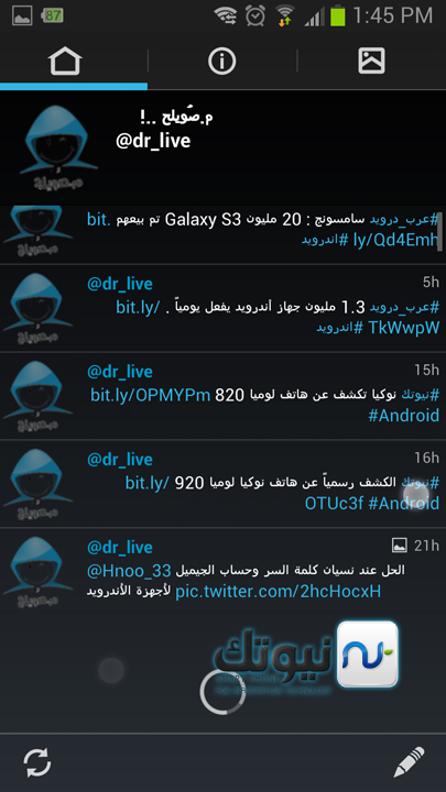 - ٢- استكمال تلقائي اثناء كتابة منشن .. كمثال عند كتابة ( @twitter ) سيكملها تلقائيا .