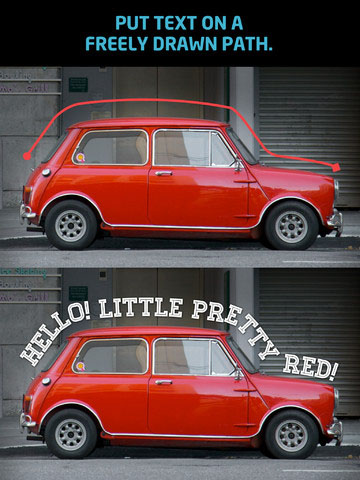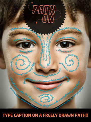 تطبيق Path on للأيفون والأيباد يعتبر من أجمل تطبيقات الكتابة على الصور لتميزه بحرية الحركة وذلك بتحديد مسار الكتابة بنفسك ولكن يعيب التطبيق عدم دعمه للكتابة باللغة العربية حتى الآن 🙁 .