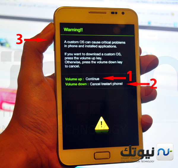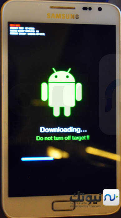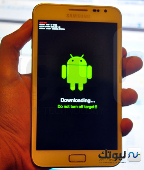 - الآن قم بالدخول لوضع التحميل ( downlod mod ) بالضغط على ( زر التشغيل + زر الهوم + زر خفض الصوت )