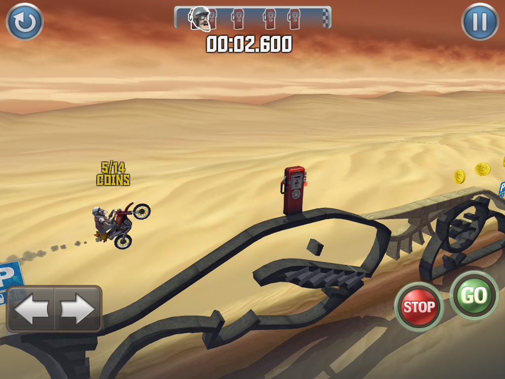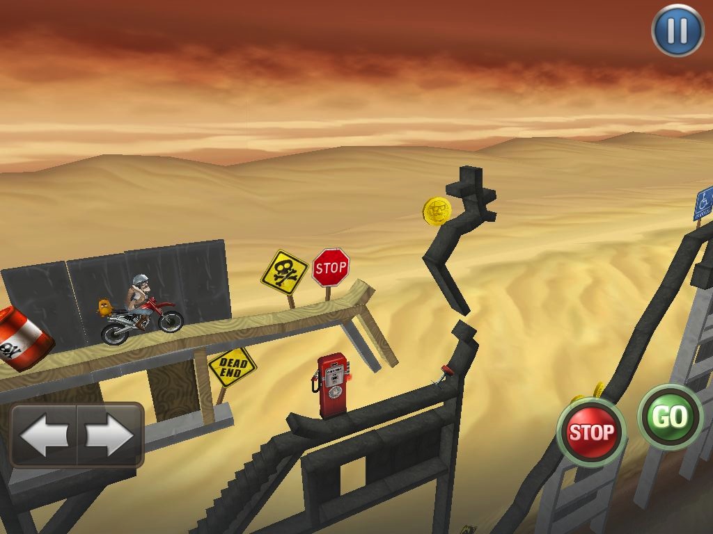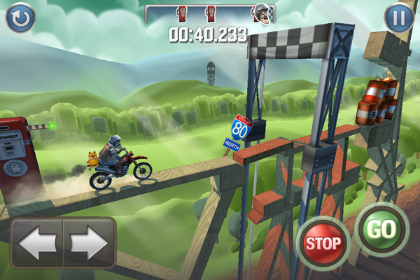 دورك كلاعب في هذه اللعبة هو قيادة دراجة نارية وقطع المسارات الخطيرة المليئة بالعراقيل وعليك تخطيها وبلوغ نهاية المسار بسلام. عملية التحكم براكب الدراجة النارية امر في غاية السهولة، زر الى الأمام والى الخلف، وزر آخر للسير والتوقف. ومن اكثر الامور روعة في هذه اللعبة هي إمكانية خلق وتصميم مسارات خاصة لكل لاعب.