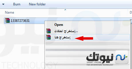 - بعد الإنتهاء من التحميل سيظهر لك مجلد مضغوط بداخله ملف الروت قم بالضغط عليه بز الماوس الأيمن وقم بعمل استخراج للملف كما في الصورة التالية :