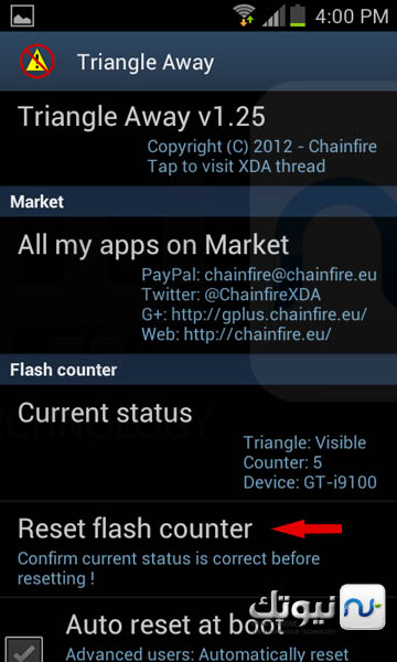 - قم بالضغط على Reset flash counter كما في الصورة بالأعلى .