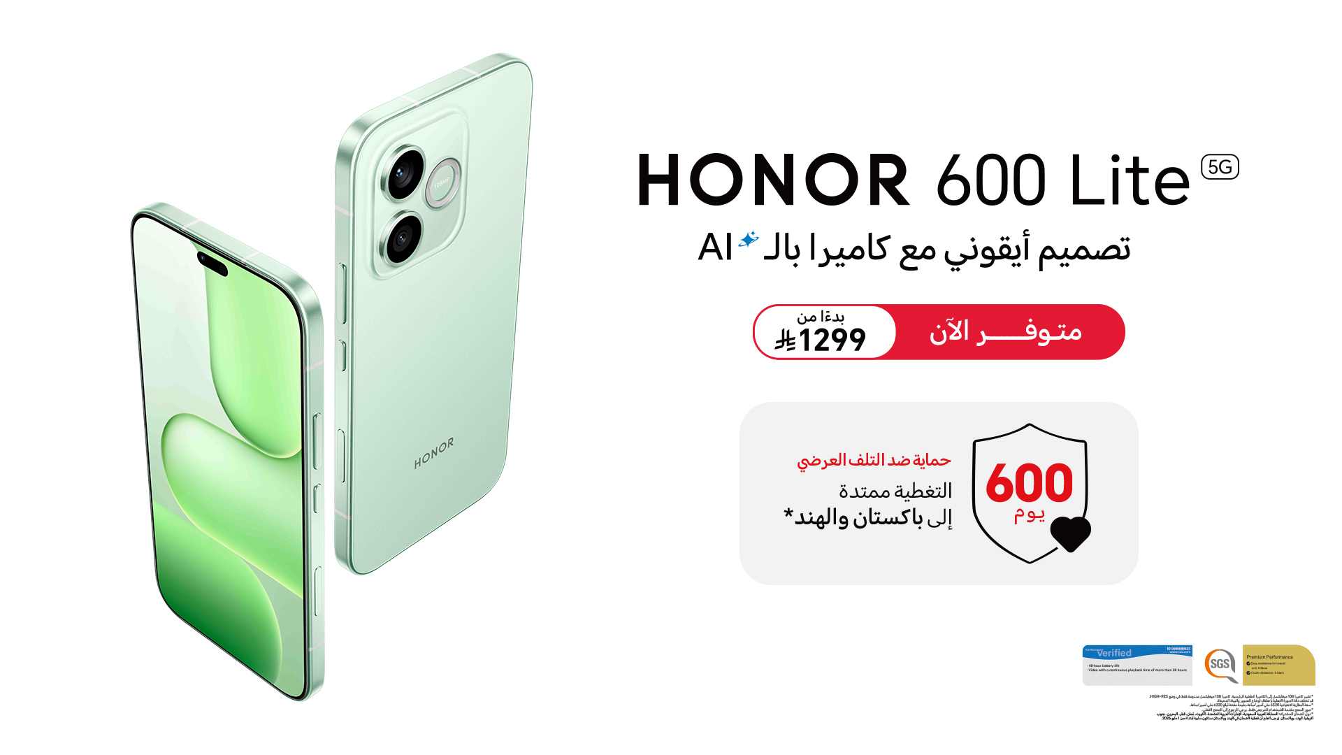 أعلنت HONOR العلامة الرائدة عالمياً في الأجهزة المدعومة بالذكاء الاصطناعي اليوم عن الإطلاق الرسمي لهاتف HONOR 600 Lite في الأسواق. ويجمع هذا الهاتف الجديد كلياً بين تصميم معدني فائق النحافة، وبطارية تدوم طويلاً بسعة 6520 مللي أمبير، ومتانة بمستوى الهواتف الرائدة، إلى جانب زر كاميرا ذكي يعمل بالذكاء الاصطناعي، وكاميرا فائقة الوضوح بدقة 108 ميجابكسل، ليمنح العملاء القدرة على تحويل لحظاتهم السريعة إلى لقطات إبداعية مذهلة بسهولة، ويجعل أحدث تقنيات الذكاء الاصطناعي والتصميم الفاخر في متناول الجميع.